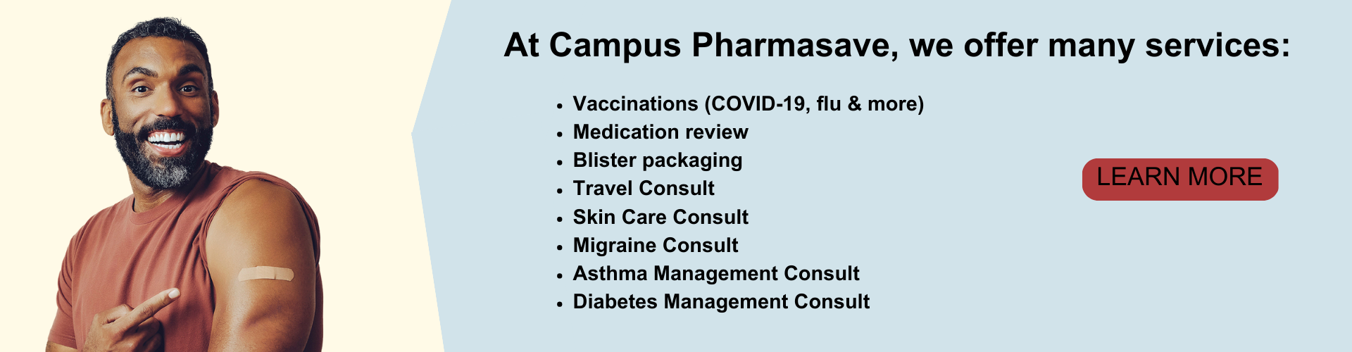 Campus Pharmasave, located in the heart of Waterloo, prides itself on providing excellent patient-centered healthcare. Nikola, owner and pharmacist, is dedicated to his work and is continuously researching and developing services to best suit his patients. We are happy to offer an array of specialized services including Pre-Travel Consults, Skin Care Consults, Migraine Consults and more.
